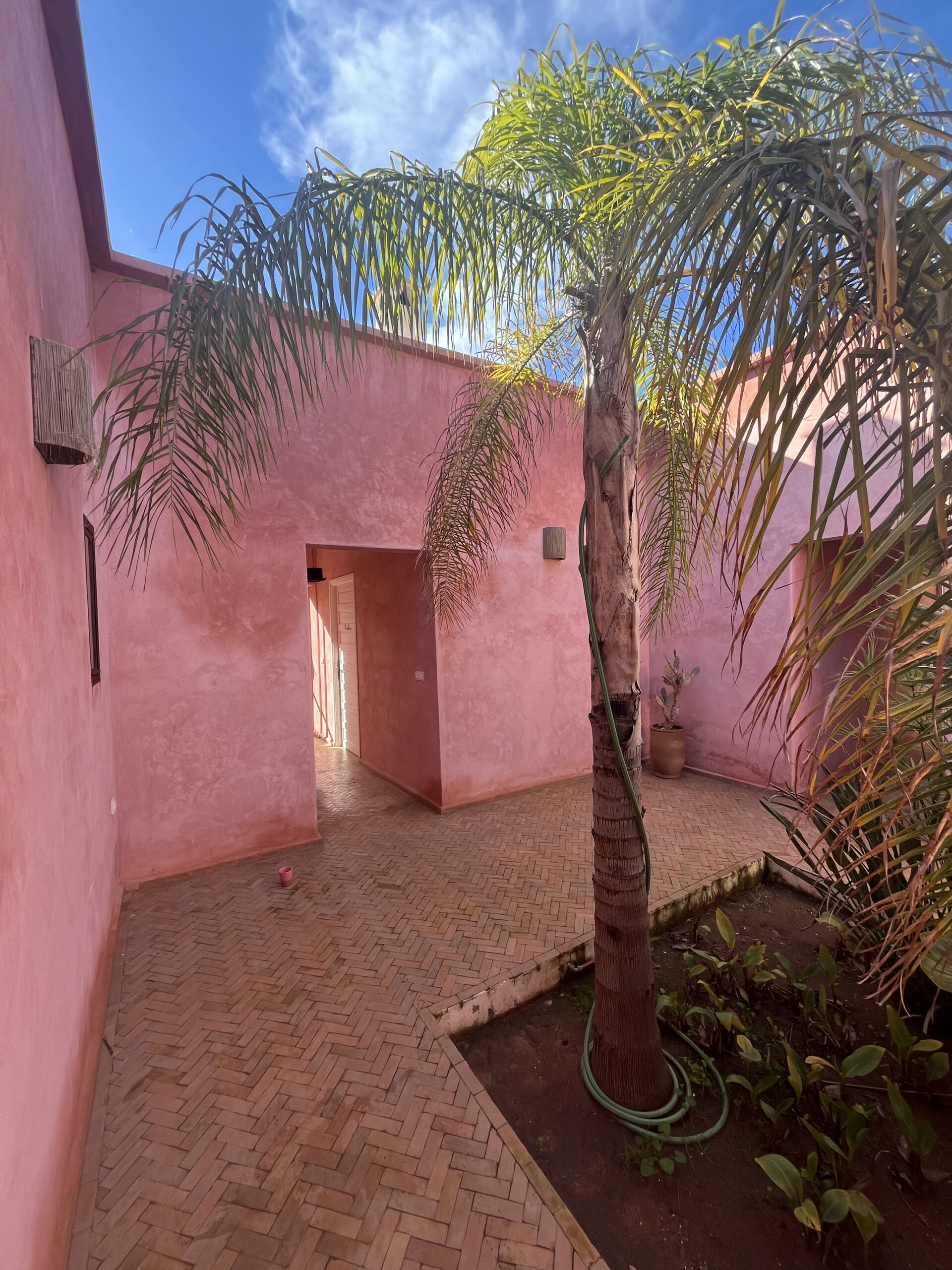 Tout habillé de rose, le patio privé, c’est votre mini kasbah au cœur de La Villa Sauvage, mais rien que pour vous. Un petit pré carré verdoyant vous accueille en toute confidentialité : fermez la porte, vous êtes ici chez vous, à l’abri du monde, avec votre propre jardin extérieur.